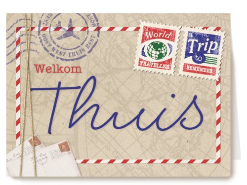 Op zoek naar een reizen,vakantie kaart? Deze Ansichtkaart welkom thuis kaart van Hallmark gemaakt van papier bestel je gemakkelijk bij ons online.