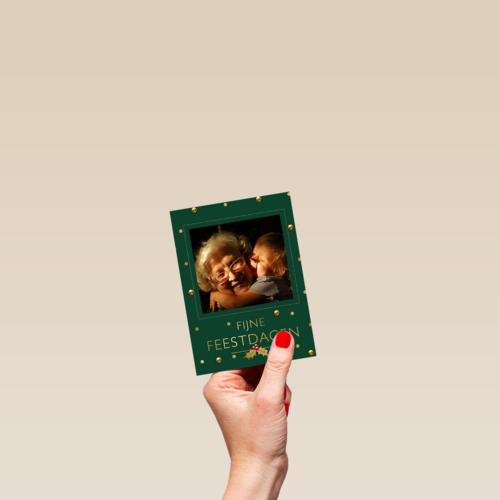 Een mooie, klassiek fotokaart voor Kerst met de tekst "Fijne feestdagen"