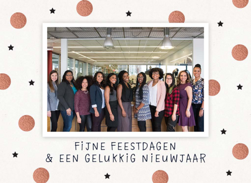 Een kerstkaart foto met koperen stippen. Fijne feestdagen en een gelukkig nieuwjaar.
