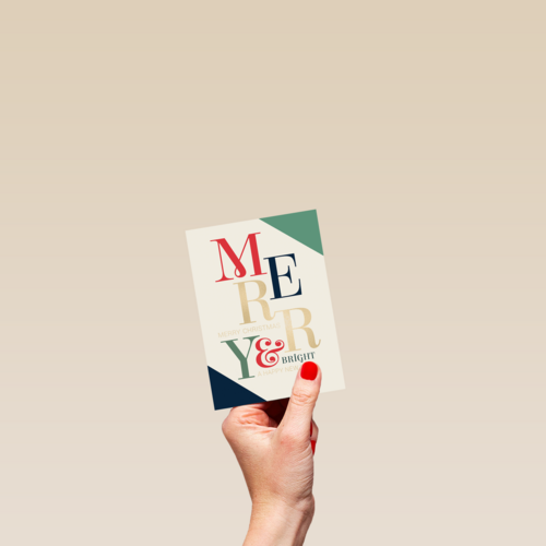 De feestdagen zijn het moment op je familie en vrienden al het beste toe te wensen. Dat doe je bijvoorbeeld met deze moderne kerstkaart. De tekst op de kaart luidt: Merry Christmas & a bright and happy new year