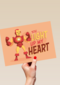 Een liefde kaart van Ironman. Een oranje achtergrond met Ironman en de tekst "You light up my heart"