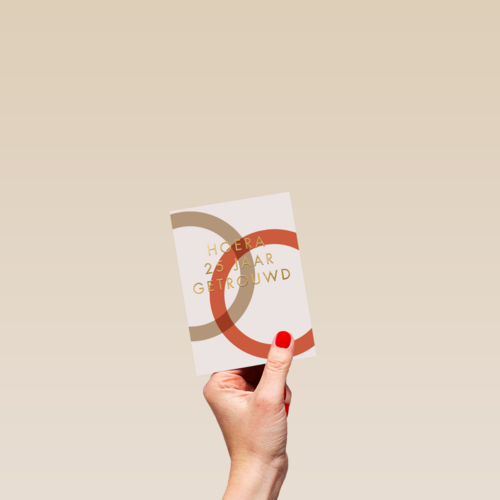 Kaart met 2 gekleurde ringen, hoera, 25 jaar getrouwd (geschreven in gouden letters)