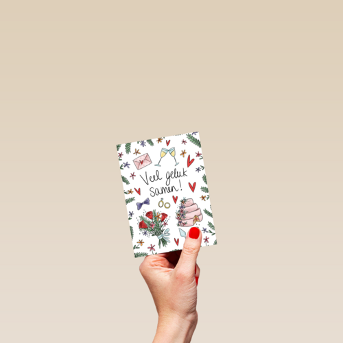 Op zoek naar een bruiloft kaart? Deze Trouwdagkaart Veel geluk samen Matia Studio kaart van Matia Heesakkers gemaakt van papier bestel je gemakkelijk bij ons online.