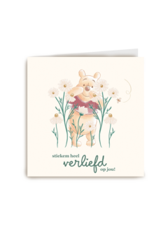 Winnie de Poeh die tussen bloemetjes staat. Stiekem best verliefd op jou!