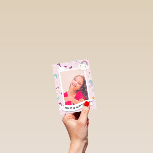 Op zoek naar een meisje,feest,foto kaart? Deze Een uitnodiging met eenhoorns zeemeerminnen en regenbogen kaart van Hallmark gemaakt van papier bestel je gemakkelijk bij ons online.