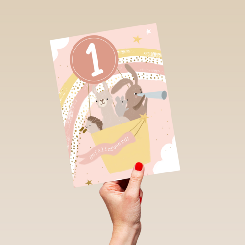 dieren in een luchtballon voor een eerste verjaardag
