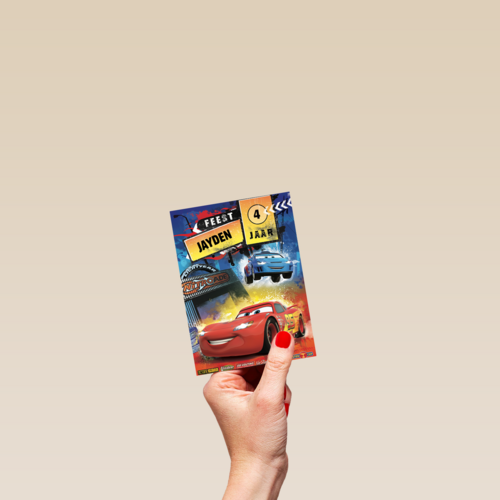 Op zoek naar een 4,leeftijd,verjaardag kaart? Deze Disney cars feest kaart van Disney gemaakt van papier bestel je gemakkelijk bij ons online.