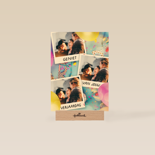 Een feestelijke fotokaart waar je 3 leuke foto's op kan plaatsen, daarmee stuur je een originele en persoonlijke verjaardagsfelicitatie. Geniet van jouw verjaardag.