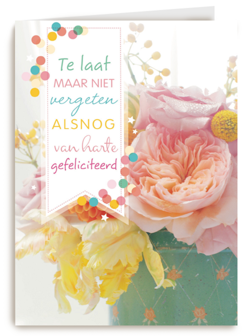 verjaardag kaart te laat maar niet vergeten gefeliciteerd