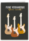 Een verjaardagskaart met 3 gitaren, en de tekst "Fijne verjaardag, you rock!"