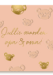 Jullie worden opa en oma! Zacht oranje felicitatiekaart bij een kleinkind op komst. Gouden beertjes in de achtergrond.